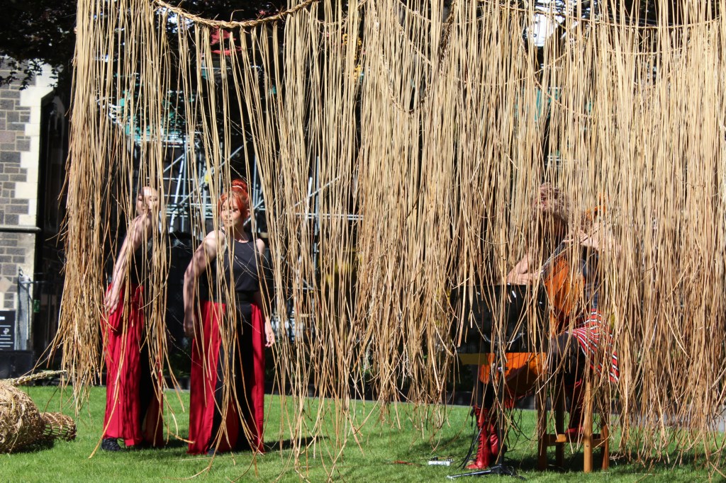 Labyrinth III South Quad, Christchurch Arts Centre, 2020. Fleur de Thier, Nicole Reddington, and dancers
