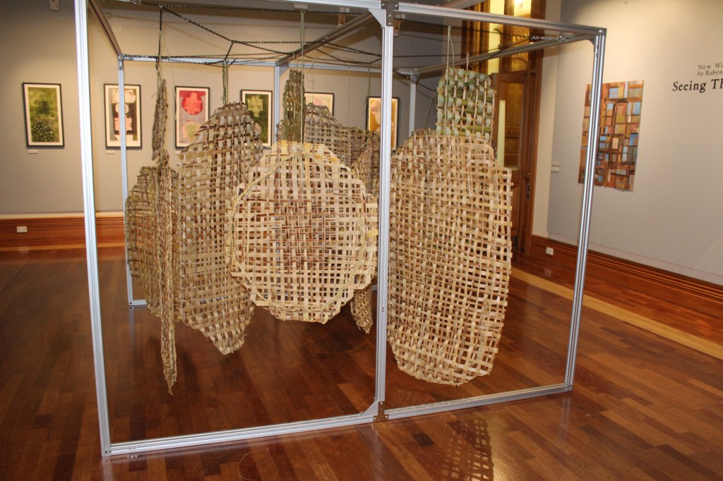 As the shields dried, they changed. The greens and oranges went through browns and reds and then settled into their current range of varied light browns. The weave parted, shrinking and toughening. They became more like filters, allowing light to pass through, casting complex shadows. And as they opened up, they allowed views through.
