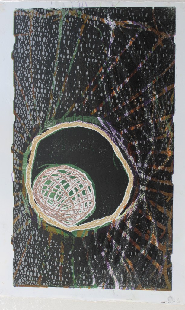 In the printmaking I explore these themes further.